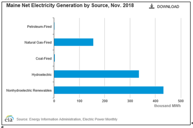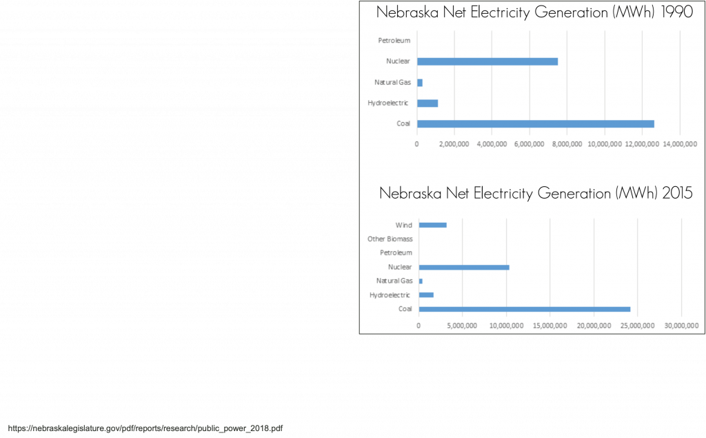 Nebraska gets just 20% of its power from renewable energy sources, and over half of it from coal. (Maine gets over 80% from renewables)